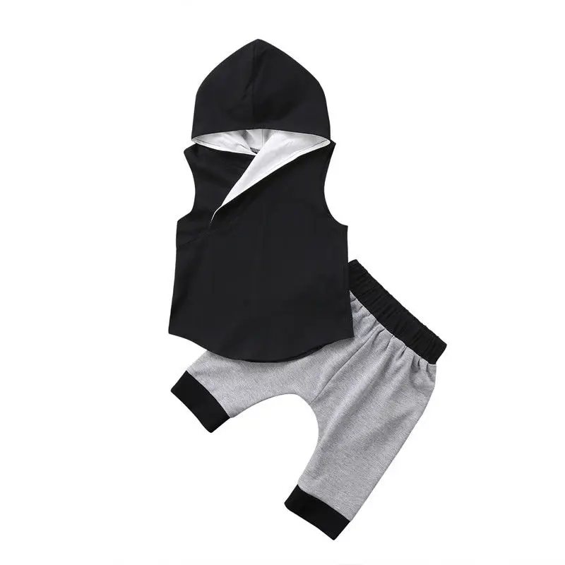 Cheap Price of 2 pieces Solid Sleeveless Hoodie Top and Shorts Set For Toddler and Baby Boy Clothes