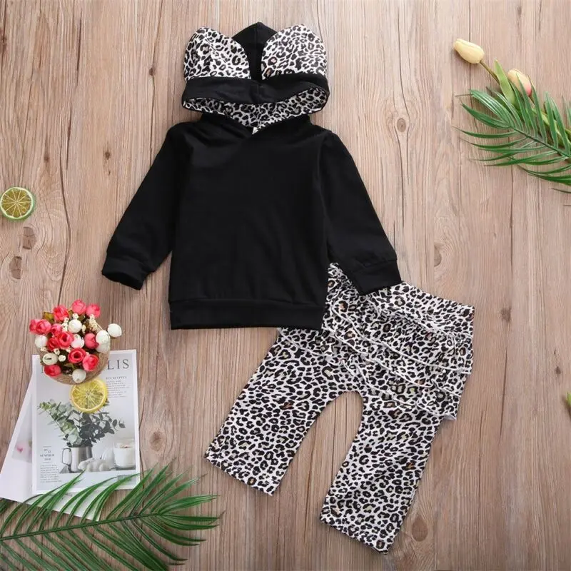 Special Chance for Fall winter outfits baby girls mommy and me fleece cotton hoodie clothes children leopard ruffles l