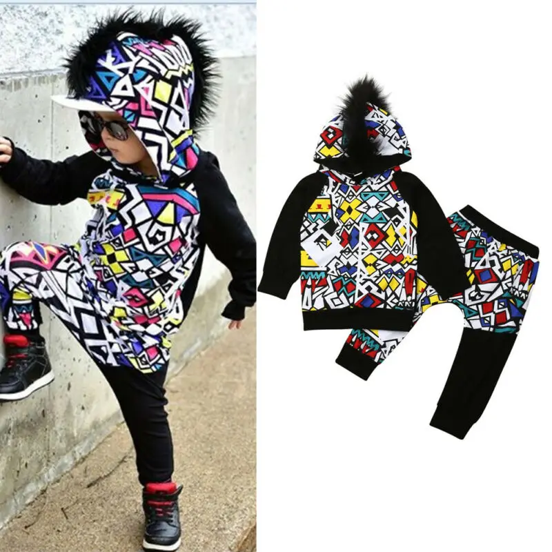 Good Price for toddler winter Autumn clothes Baby Boys Printed Outfits Newborn Kids Clothes Hoodies Top Pant Trous
