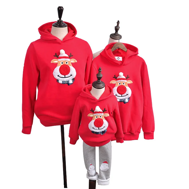 Best Chance for Parents and Children Clothes Cashmere Christmas Protection Red Nose Fawn Hoodie Baby Girl Boy Famil